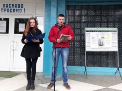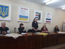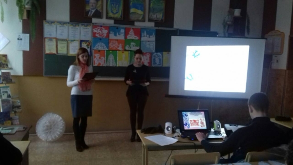 Учні 11 групи трактористів Дмитро Болдижар та Олеся Семенчук з 212 групи барменів виступили перед аудиторією з віршами про рідну мову та писемність,розповіли про історію та виникнення нашої української рідної мови.